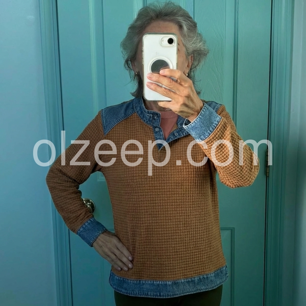 I’m really impressed with this top. The waffle pattern gives it a unique look, and the denim contrast makes it stand out in a good way. I also like that it’s easy to match with different outfits—perfect for someone who wants both style and comfort.