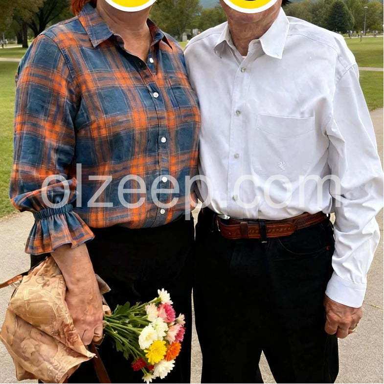 Blue Check Button Down Shirt with Ruffle Cuff Sleeves