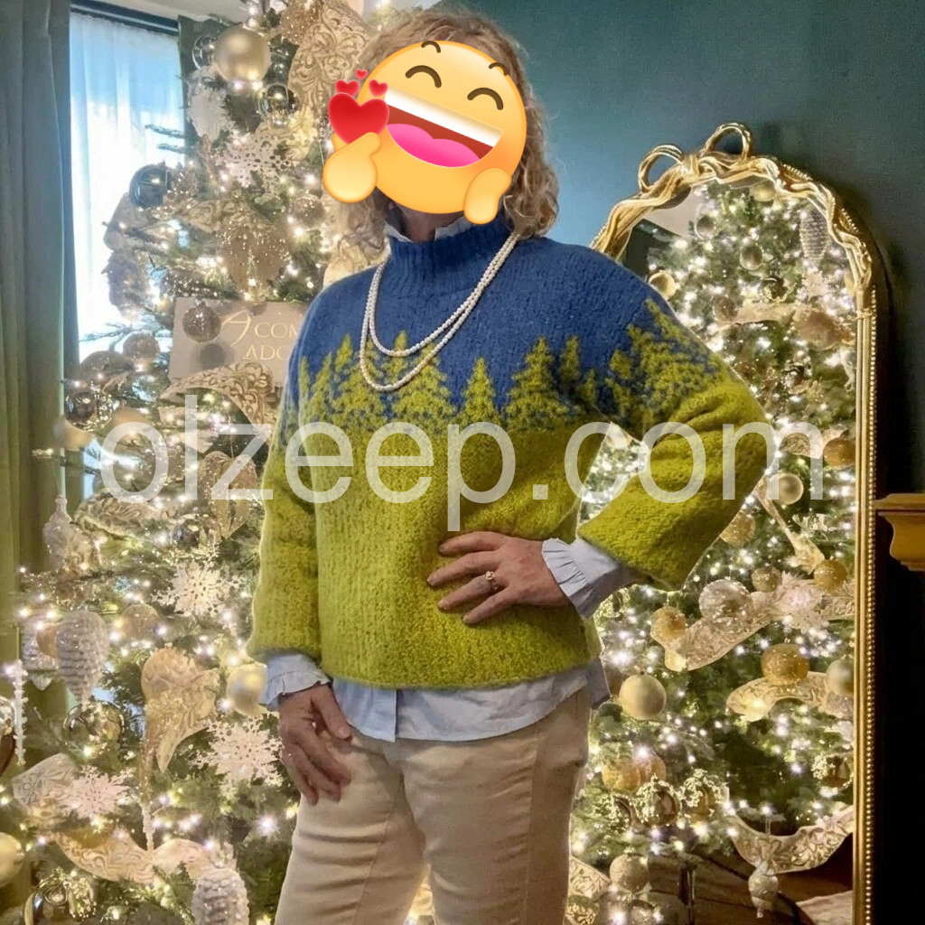 Great purchase! This sweater is incredibly soft and warm, perfect for cold weather. The design is so cute—those little trees are such a sweet detail, and the color contrast is bold but stylish. The bell sleeves are a nice touch, adding a feminine flair without being too frilly. It fits well, not too tight or too baggy, and the high neck is great for blocking out the wind. I’ll definitely be buying more colors if they become available!