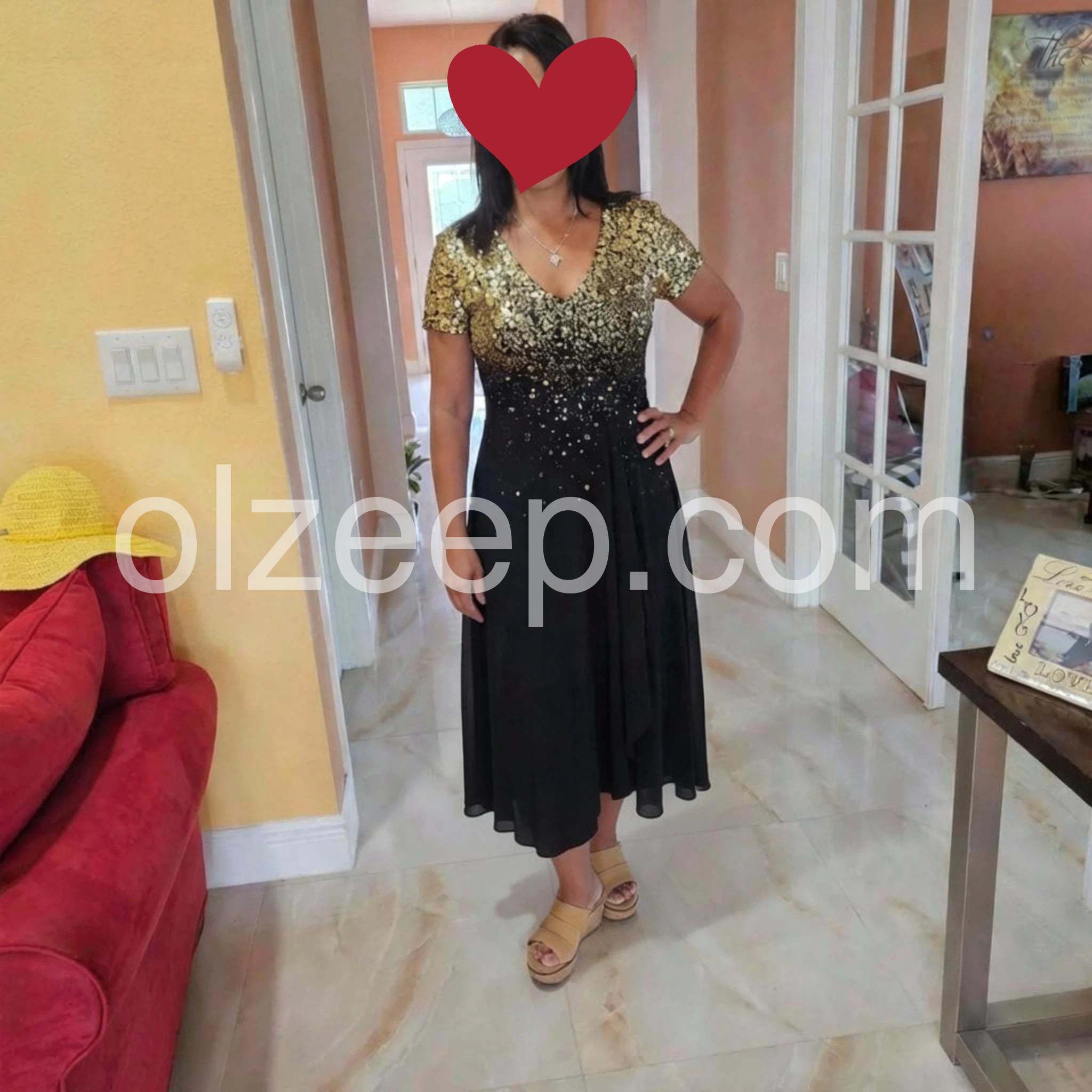 Beautiful dress for a holiday party! The sequins on the bodice catch the light perfectly without looking cheap. The skirt drapes beautifully and hides any tummy insecurities. I ordered my usual size and it fit like a glove. Will definitely buy from this brand again.