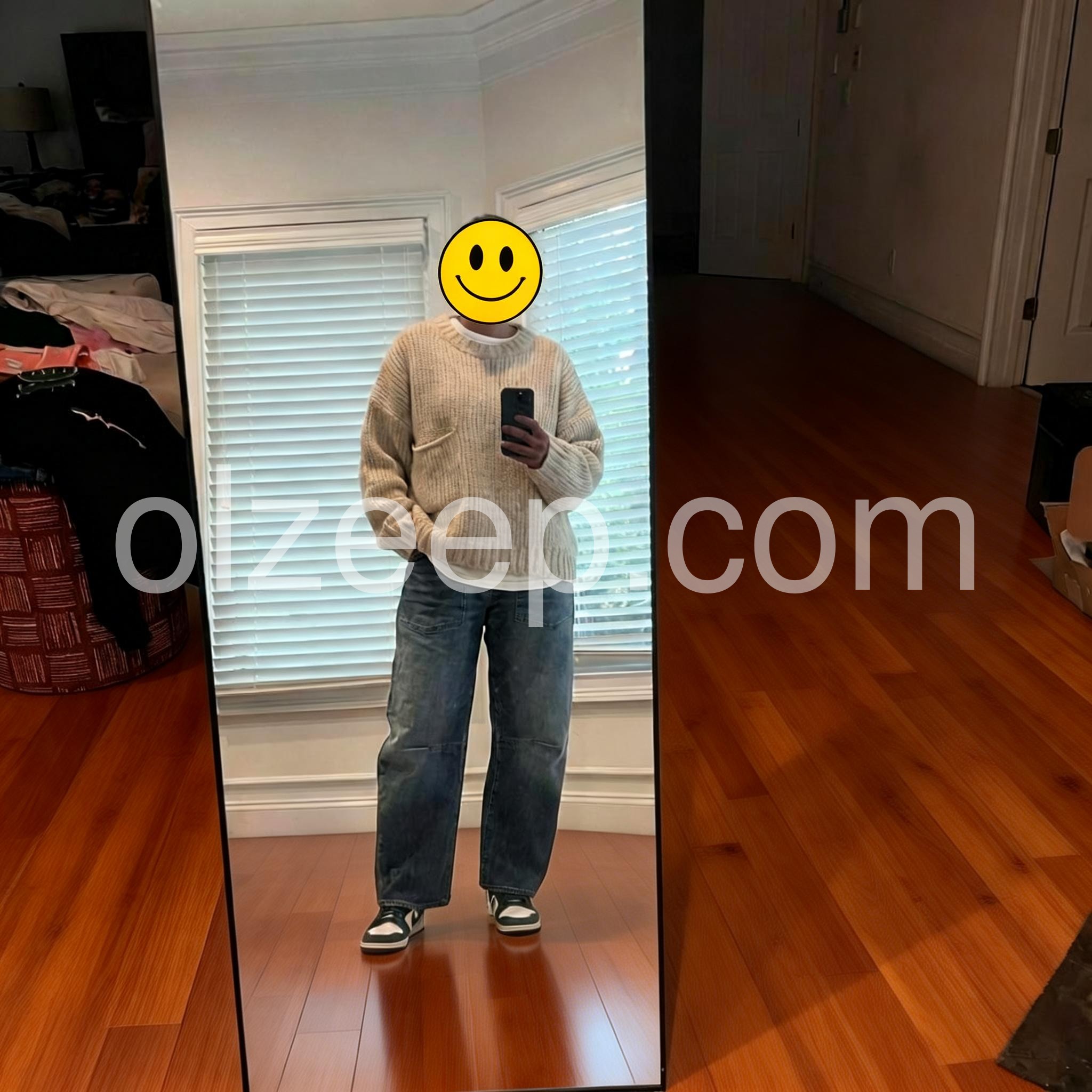 I am absolutely obsessed with this sweater! The oversized fit is exactly what I was looking for, and the large front pocket adds such a unique and cute touch. It is perfect for layering over a basic white tee just like the model. The oatmeal color goes with everything in my fall wardrobe.